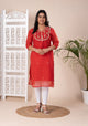KcPc New Arrival Jaipuri Traditional Marwadi Gotapatti Handwork Long Straight Kurtis