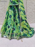 This Shibori Style lehenga made from Chinon Silk fabric is perfect for festive wear. It looks elegant and helps you look graceful at celebrations and special occasions.