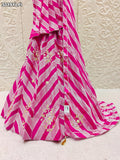 This Leheriya Style lehenga made from Chinon Silk fabric is perfect for festive wear. It looks elegant and helps you look graceful at celebrations and special occasions.