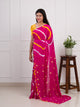 This saree comes with a matching blouse and showcases the beautiful Leheriya print on soft Georgette, making it a simple yet stylish choice.