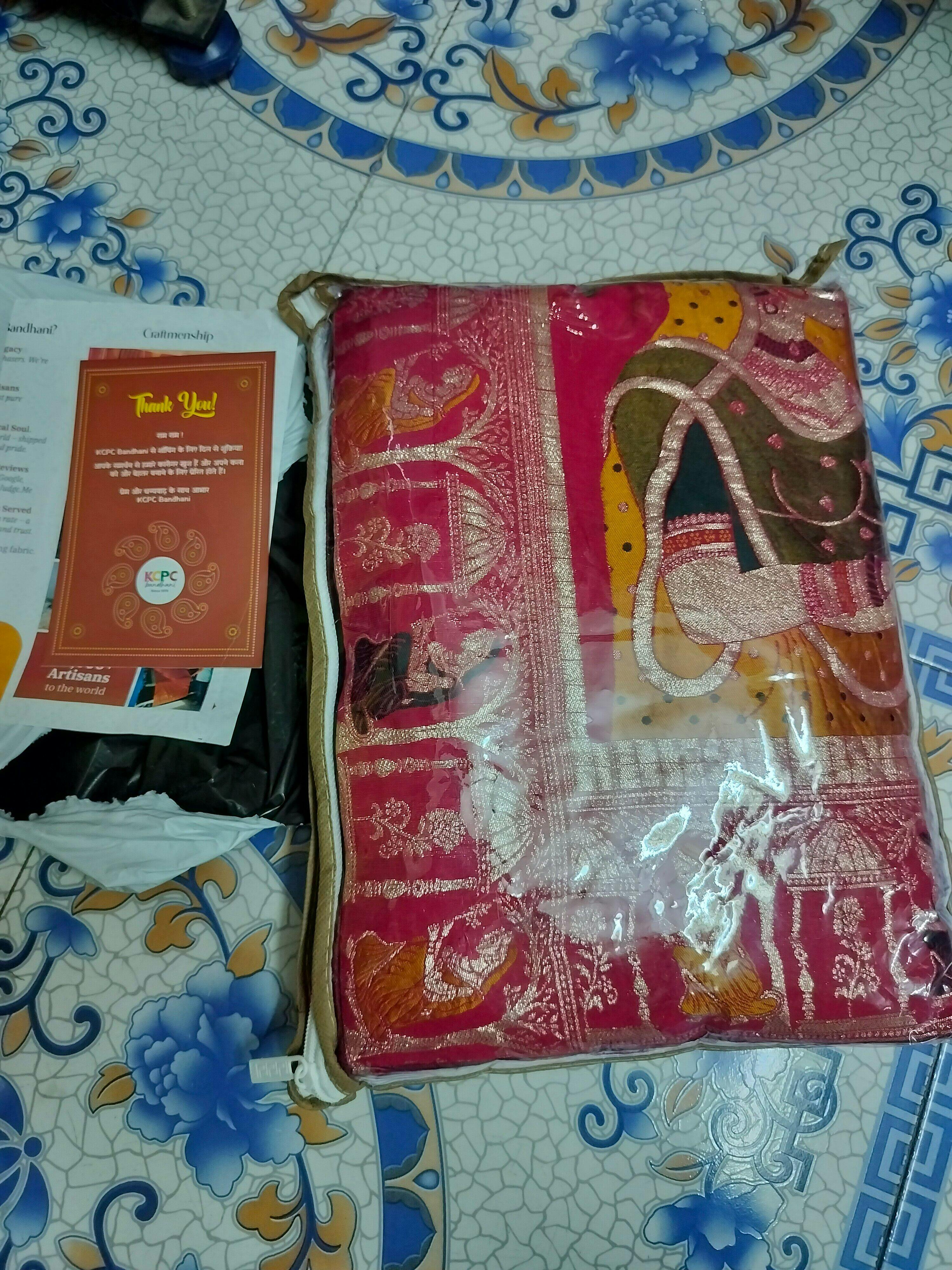 - If the products get damaged or lost during transit by the shipping company, KCPC Bandhani can not be held liable. KCPC Bandhani will not be held responsible for any delay, damage in transit, or otherwise due to the courier company. Once the customer receives the product from the courier company or any other delivery methods and acknowledges it, it shall be treated as good delivery and on no grounds it shall be returned as bad delivery.
