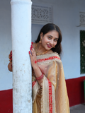 KcPc Latest Kota Doria Lehe...KcPc New Premium Tissue Gold Saree for Wedding Wear with Zardosi Embellishment NSC