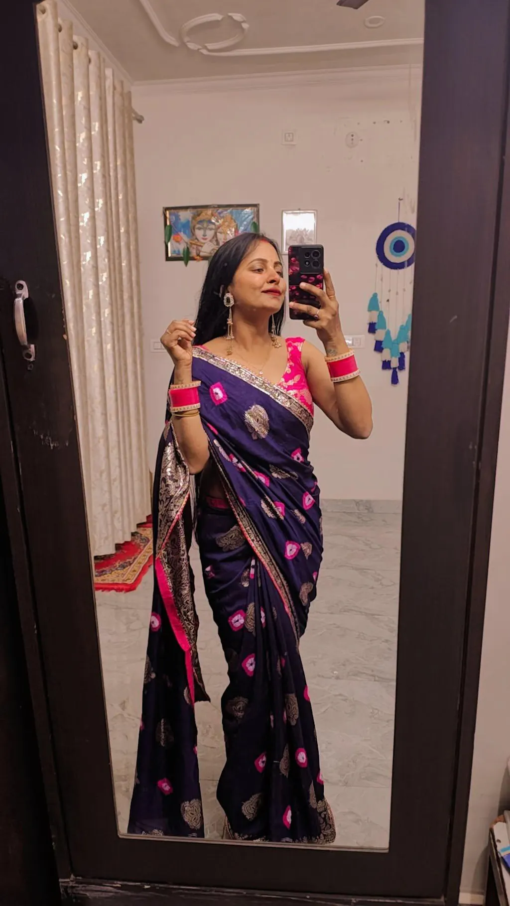 Saree achi hai overall but wo color chod rhi h maine usko gangaur pr phena or wo pink pink ho gya mere hatho pr..