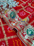 KcPc New Elegant Gaji Silk Bandhani Saree with Traditional Gotapatti Work Perfect for Festive WearAMT