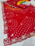KcPc New Graceful Chiffon Silk Bandhani Saree with Beautiful Peturn Work for Festive Occasions SWA