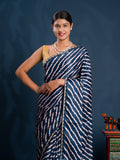 This lovely Leheriya style saree is made from smooth Crepe Silk fabric with pretty Leheriya patterns and elegant Gotapatti border.