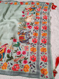 KcPc New Royal Festive Collection Tusser Silk Kalamkari Saree with Traditional Gulin Work RB