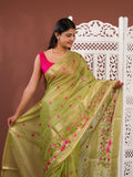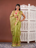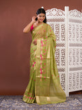 KcPc New Traditional Tissue Cotton Saree with Beautiful Kashida Embroidery SWA