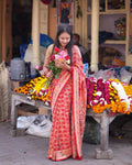The soft Pure Khaddi fabric feels nice to wear. The Zari Weaving makes it look extra beautiful. Comes with a matching blouse piece.