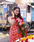 KcPcFigure Design Khaddi Georgette Janglaw Bandhani Neemzari Saree Red