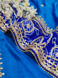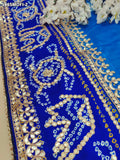 KcPc Pure Gaji Silk Handmade Bandhej Piliya Style Gotapatti Work Saree AMT Firozi Blue